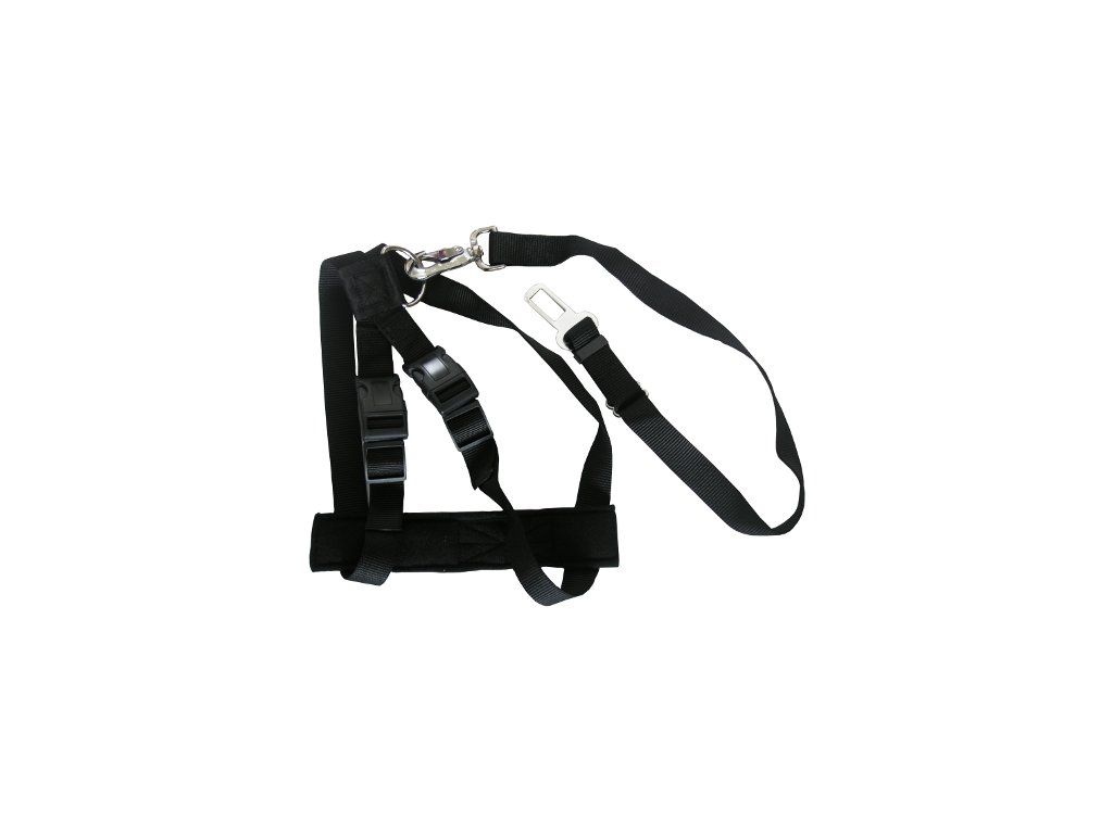 - Bezpečnostní postroj pro psy do auta s připínáním, černý.