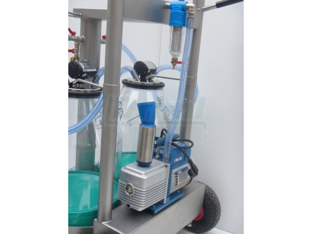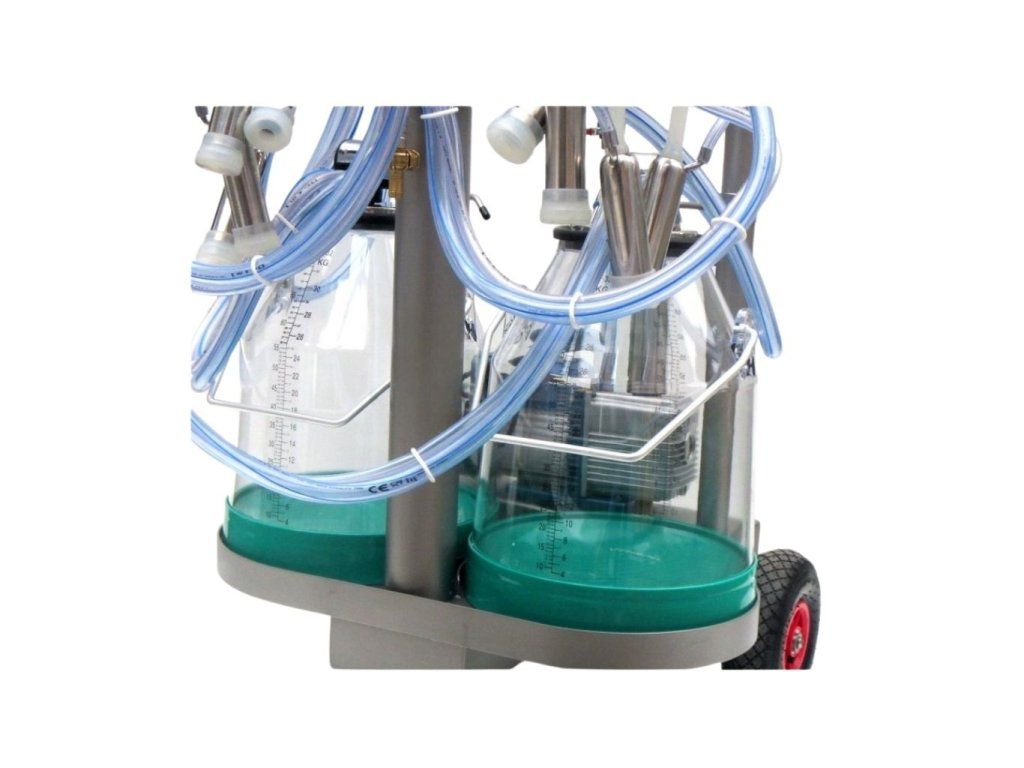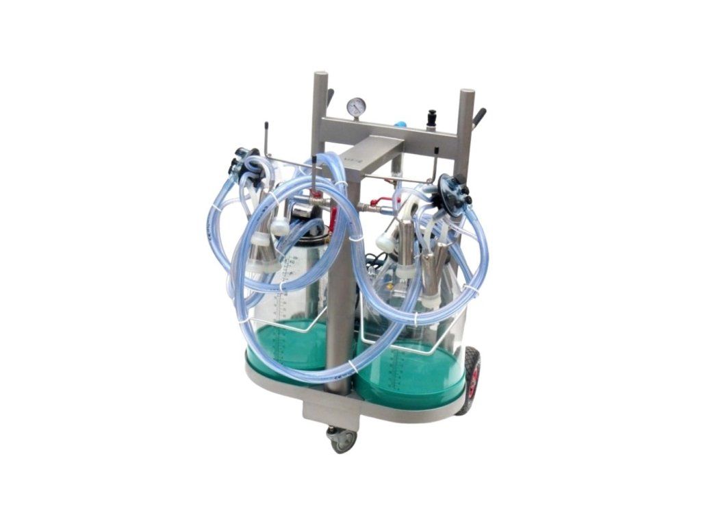 - Kompaktní celonerezový podvozek / vzdušník pro dvoukonvové dojení 28 litrů
