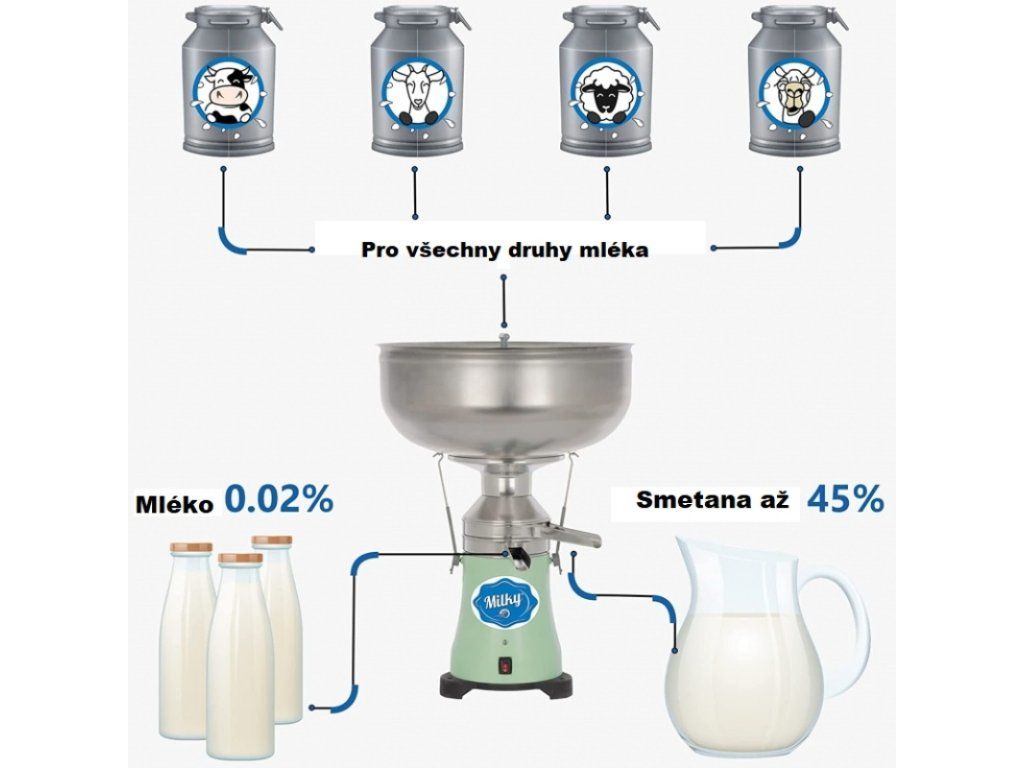 - Můžete oddělit mléko krav, koz, ovcí, velbloudů a dalších