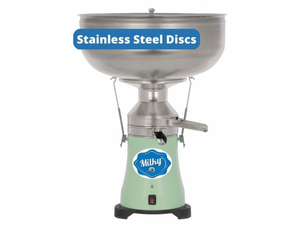 Elektrický separátor smetany Milky FJ 130 ERR SS je jediným modelem, který je dodáván s přídavnou sadou nerezových disků uvnitř balení. Zakoupením tohoto separátoru získáte standardní model Milky FJ 130 s kotouči a bubnem vyrobeným z eloxovaného hliníku, ale kromě toho najdete doplňkovou sadu kotoučů z nerezové oceli, které můžete v případě potřeby vyměnit. Samotný buben je ale stále vyroben z eloxovaného hliníku.
