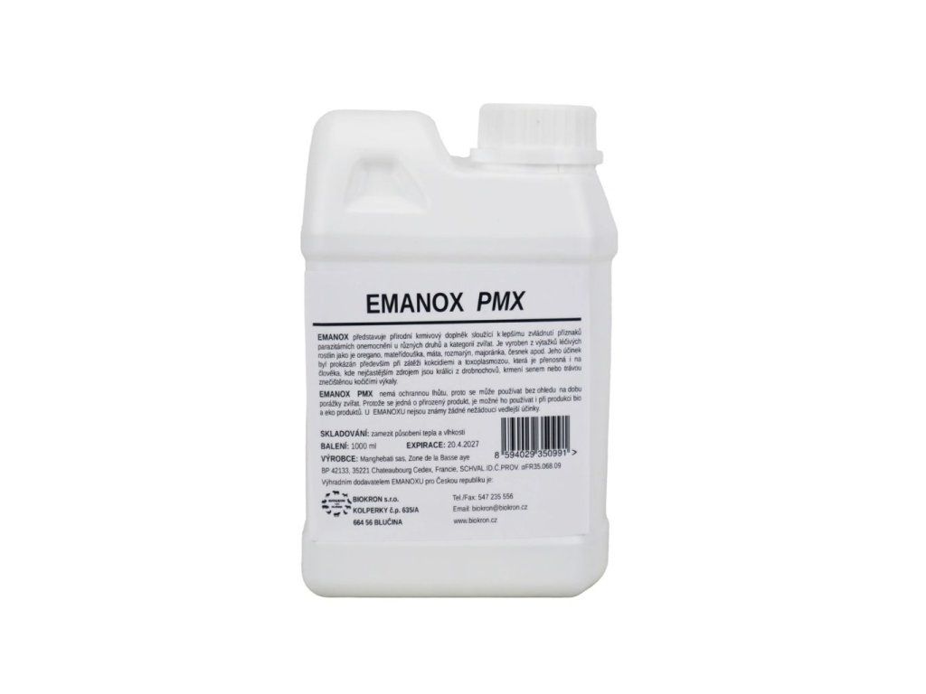 - Tekutá forma EMANOXU označená PMX je vhodná hlavně k léčbě kokcidiózy