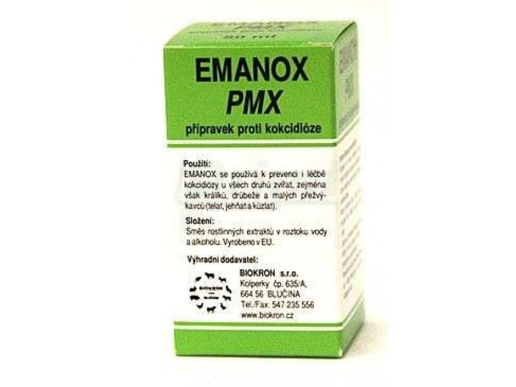 zejména však králíků, drůbeže a malých přežvýkavců – telat, jehňat a kůzlat. - Tekutá forma EMANOXU označená PMX je vhodná hlavně k léčbě kokcidiózy