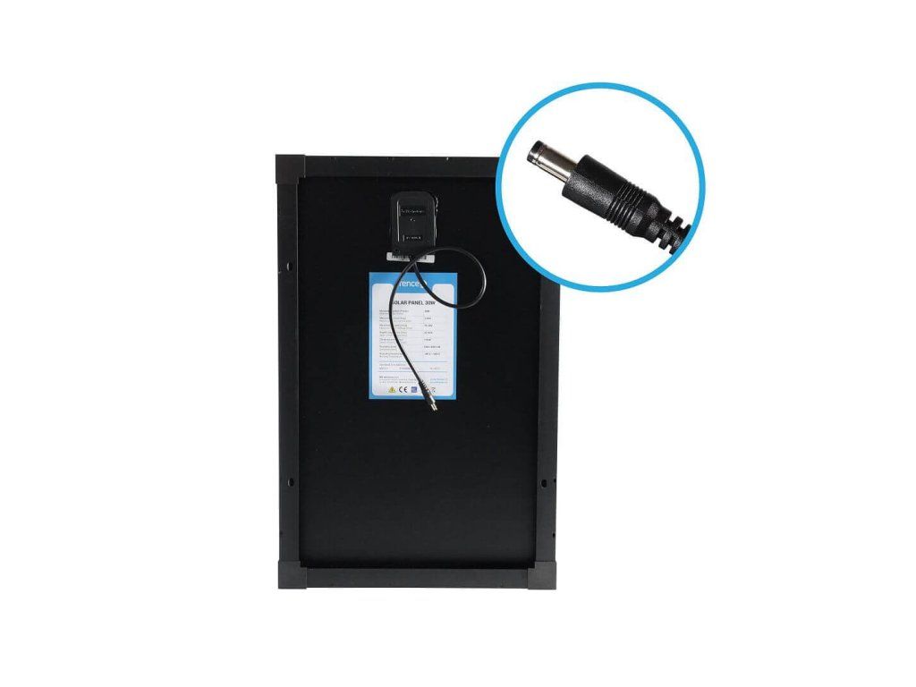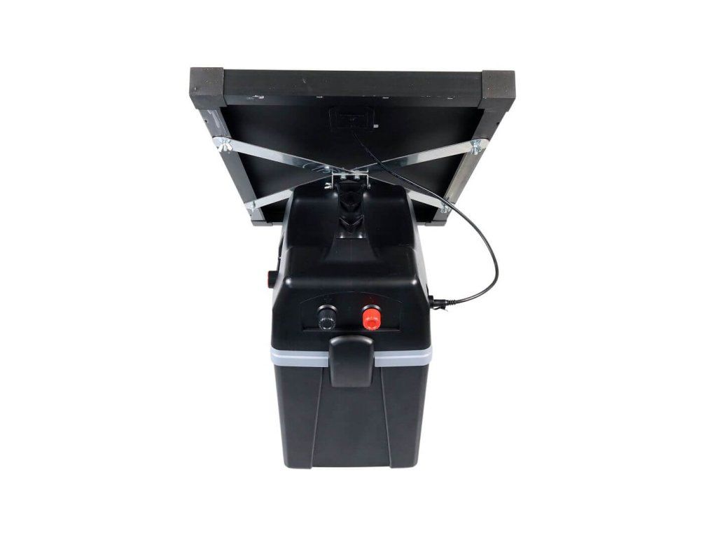 - Na bateriový zdroj lze připojit solární panel s výkonem 30W , který zajistí nepřetržitý provoz. S možností solárního dobíjení elektrického ohradníku získáte energeticky soběstačný systém, který lze provozovat i v odlehlých oblastech. Solární panel je upevněn pomocí montážní konzole a lze polohovat směrem ke slunci podle potřeby.