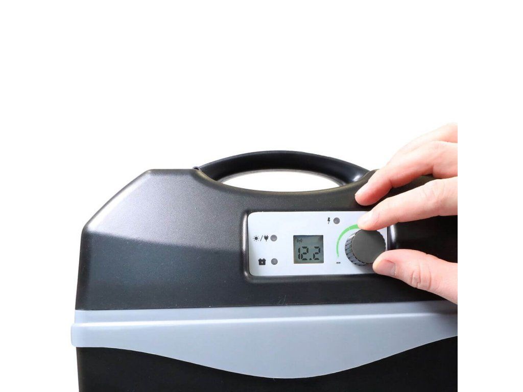 - Přenosný bateriový generátor pro elektrické ohradníky s displejem pro indikaci napětí ohradníku, napětí baterie a úrovně výkonu. Výstupní výkon lze plynule nastavit otočným ovládacím tlačítkem v 19 úrovních. Signalizační LED diody pro funkci zařízení a stav baterie. Zařízení disponuje kombinovaným napájením, lze tedy napájet i adaptérem ze sítě 230 V.