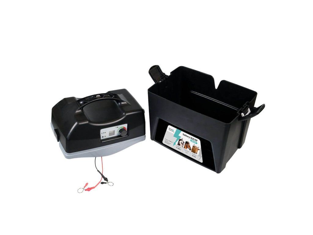 Ohradník na baterii disponuje velkou přihrádkou pro 12V baterii s kapacitou 44 Ah. Baterie se umístí dovnitř a je chráněna před UV zářením a povětrnostními vlivy. Osoba přenášející bateriový ohradník, je chráněna před kontaktem s baterií. Zařízení disponuje indikátorem stavu baterie a ochranou proti hlubokému vybití pro co nejdelší životnost baterie.