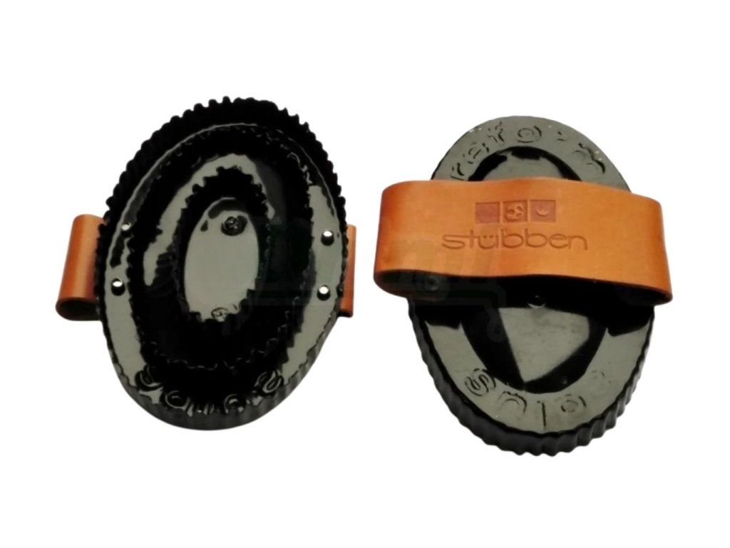 Hřbílko ADLUS oválné, s koženým páskem, černě lakované.