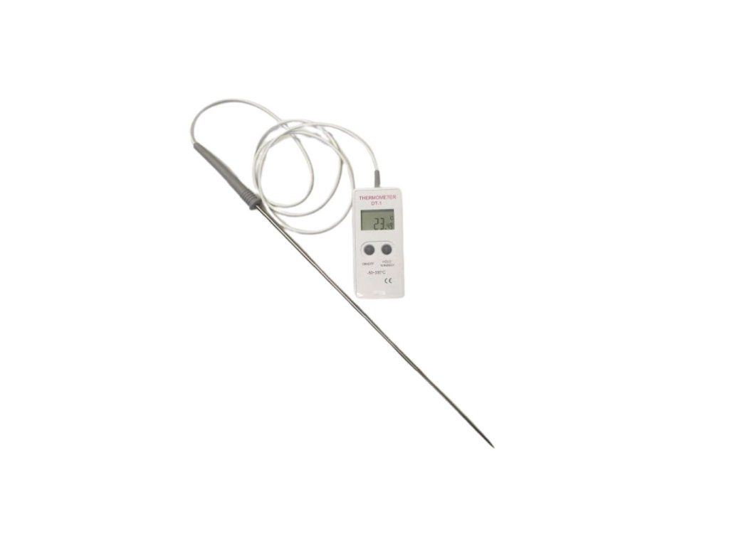 - Kalibrovaný digitální teploměr s 300 mm dlouhou nerezovou sondou