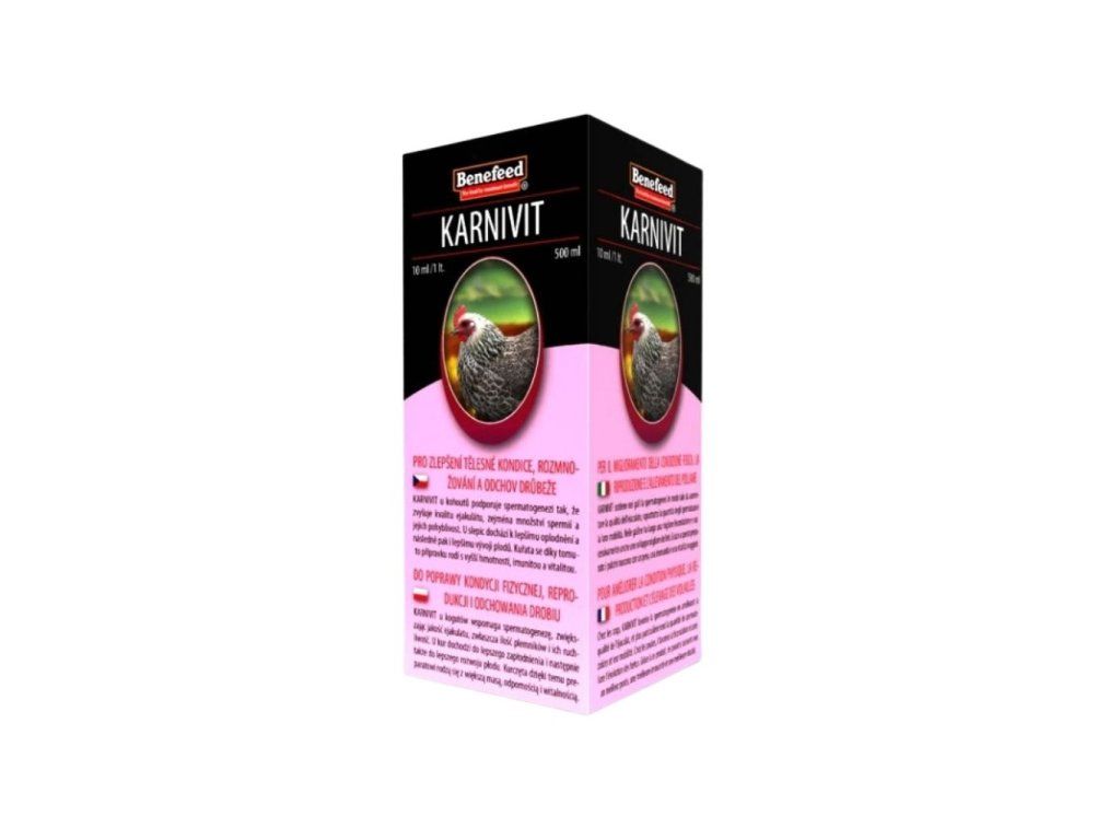- KARNIVIT obsahuje specifický komplex látek zlepšujících reprodukci drůbeže ve Vašem chovu. Všechny aktivní látky jsou ve formě, která zajistí maximální účinnost každé z nich.