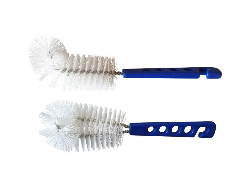 - Nylonový kartáč na drátě ve tvaru U, s držadlem a háčkem na pověšení.