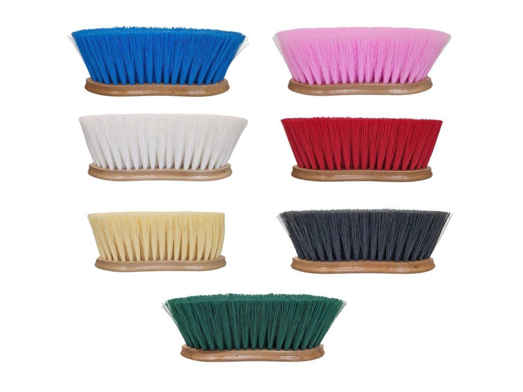 - Kartáč s dlouhými pružnými štětinami je vhodný k dočištění koně od prachu.