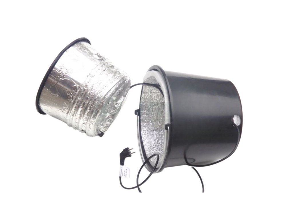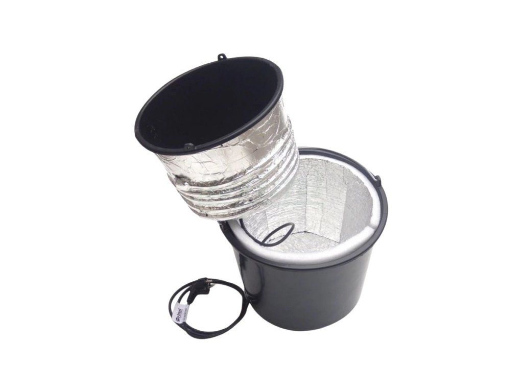 - spirála z topného kabelu je namotána ve spodní třetině kbelíku