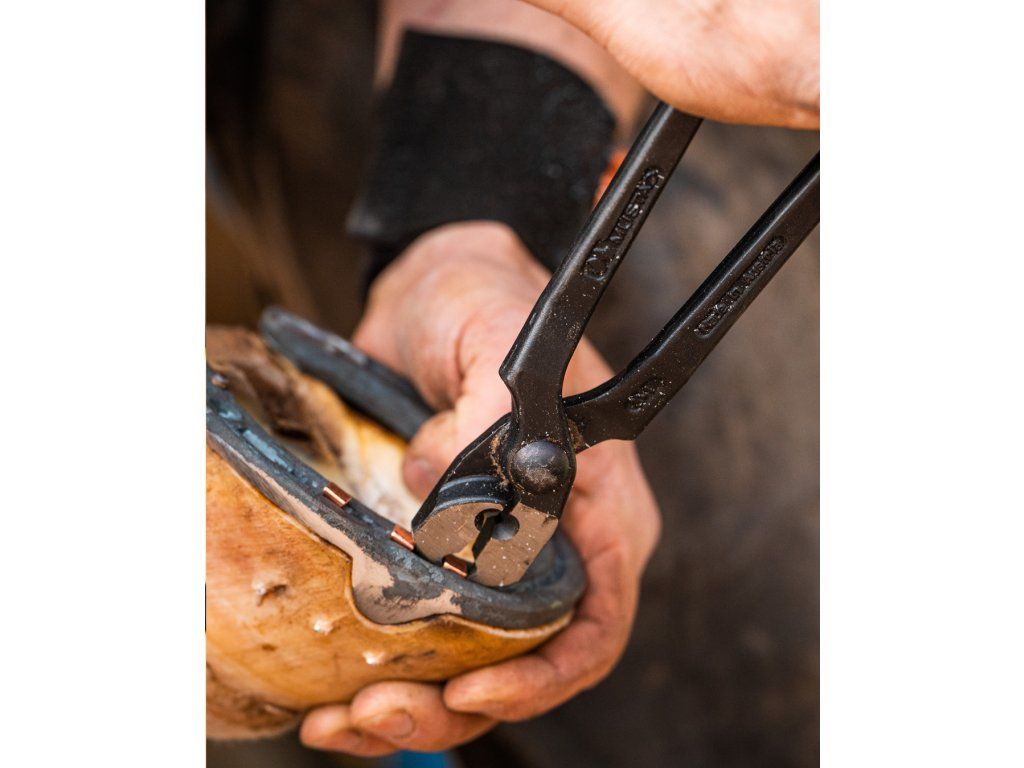 - úzké zakončení čelisti dobře pasuje pod hlavičku podkováku, který je zatlučen do podkovy