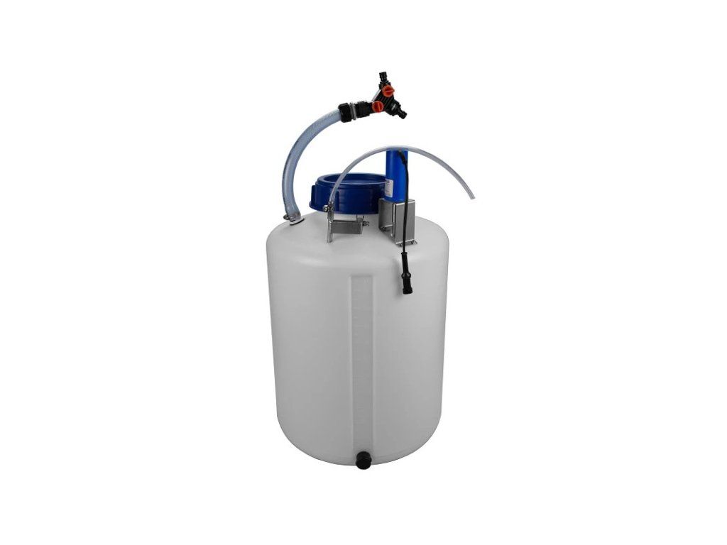 - Kontejner s míchadlem určený pro použití v kombinaci s medikátorem k úpravě vody, k medikaci nebo podávání výživových doplňků prostřednictvím pitné vody zejména prasatům a drůbeži.