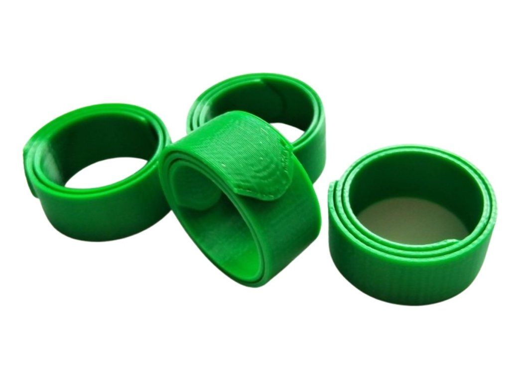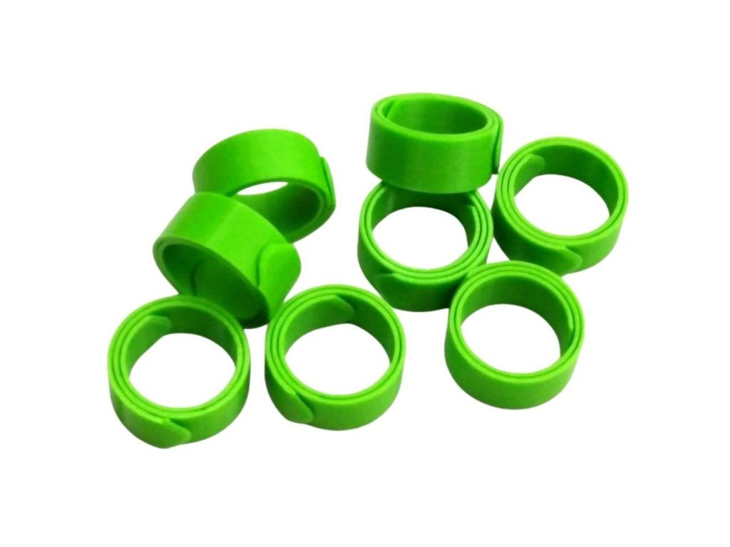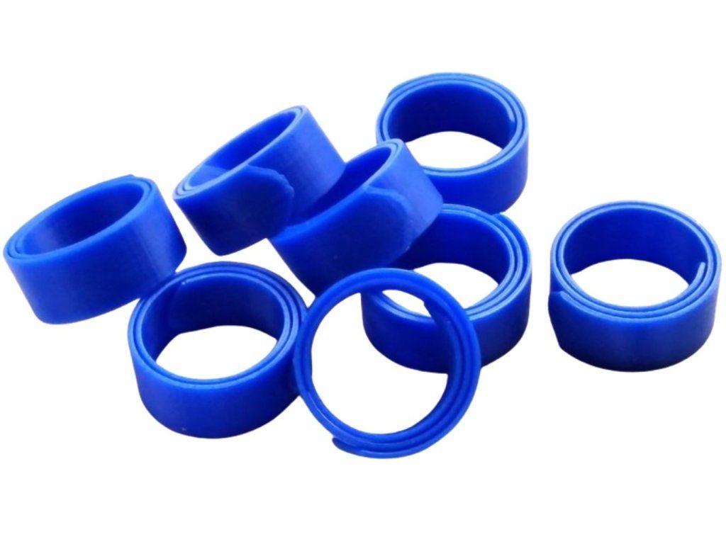 - Pozor, vzhledem ke konstrukci, je otvor ,, mírně oválný", v nejužším místě - začátek pásky - je deklarovaný rozměr, na délku je rozměr cca o 1 mm větší. To je v pořádku, noha drůbeže také nemá kulatý průřez.