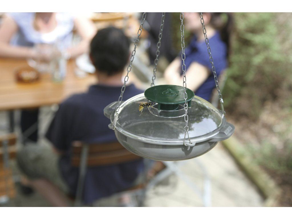 - Použití: lapač vos naplňte návnadou a postavte nebo zavěste poblíž místa, které chcete před vosami ochránit.