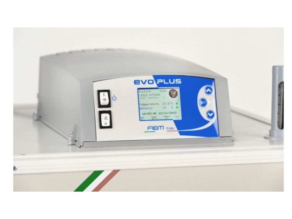 - Horizontální ventilátor v boční části líhně pro rovnoměrné rozložení tepla a speciální zařízení pro plynulou regulaci otáček ventilátoru zajišťuje intenzitu jemného větrání a odvod kysličníku uhličitého přes ventilační otvory, z nichž jeden je opatřen šíbrem pro regulaci.