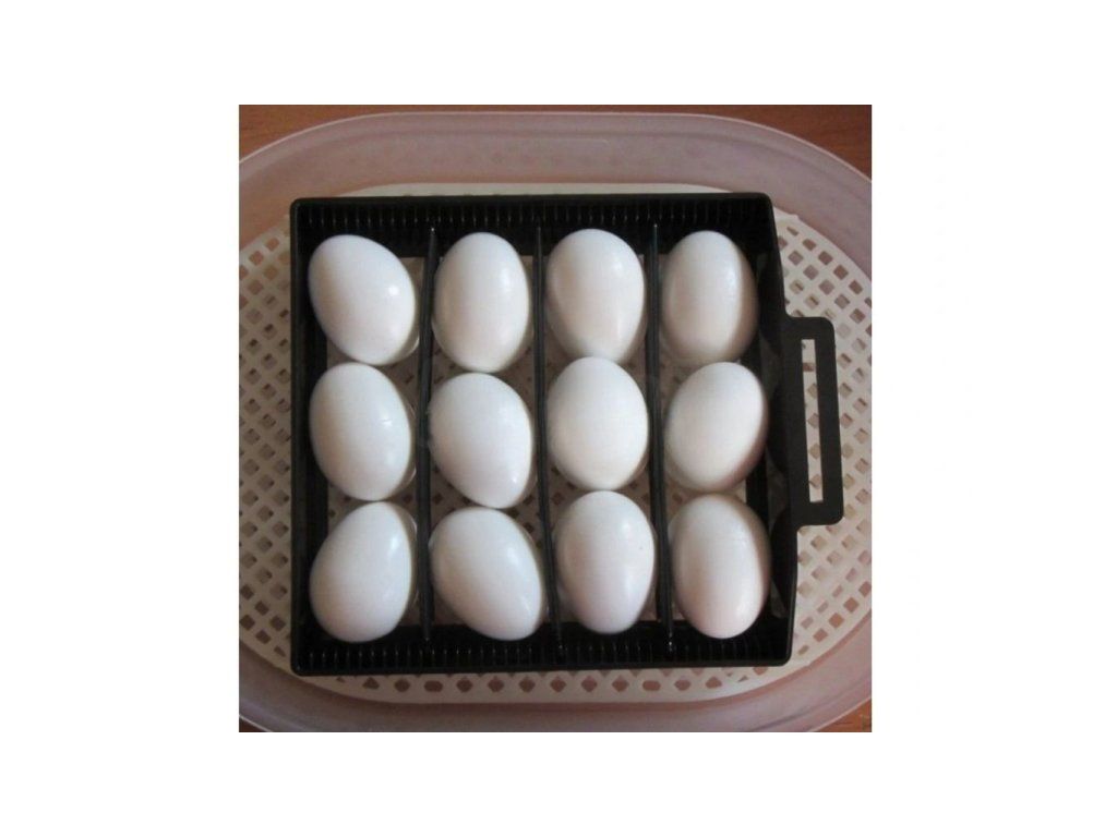 - Pro cca 10-12 slepičích vajec, 6-8 kačeních, 3 husí, 8 krůtích, 12 bažantích, 20 křepelčích.