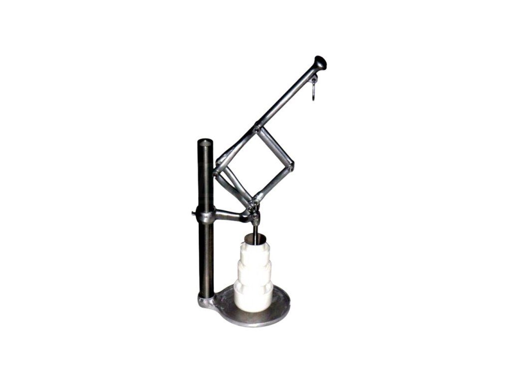 - Nároky na přesnost a složitost mechanické konstrukce je sice značná, ale tento lis přesně splňuje požadavky na postupné a kontinuální stlačování syřeniny, přičemž tlak pod pístem s klesáním páky postupně narůstá.