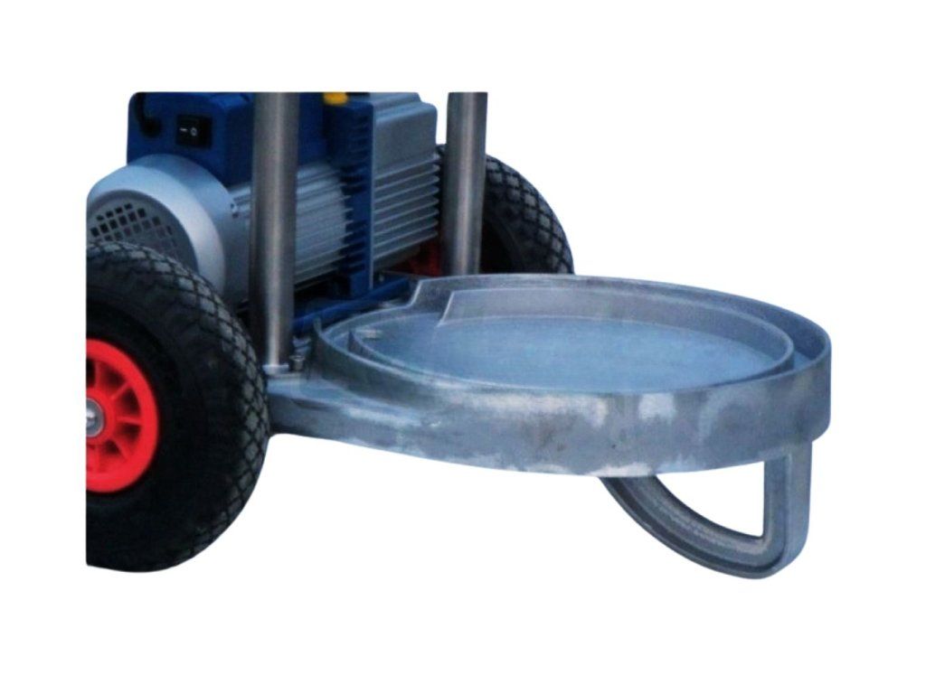 - Víko konve a vzdušník s madlem jsou vyrobeny z nerezové oceli AiSi 310. Podtlak vytváří velmi tichá olejová vývěva s výkonem 170 litrů za minutu. Vzdušník je v zájmu uživatelské pohody malokapacitní a slouží spíš pro technické napojení, dojicího stroje a odkalování. Hlavní funkci vzdušníku přebírá tedy opravdu velká, ale lehká konev.