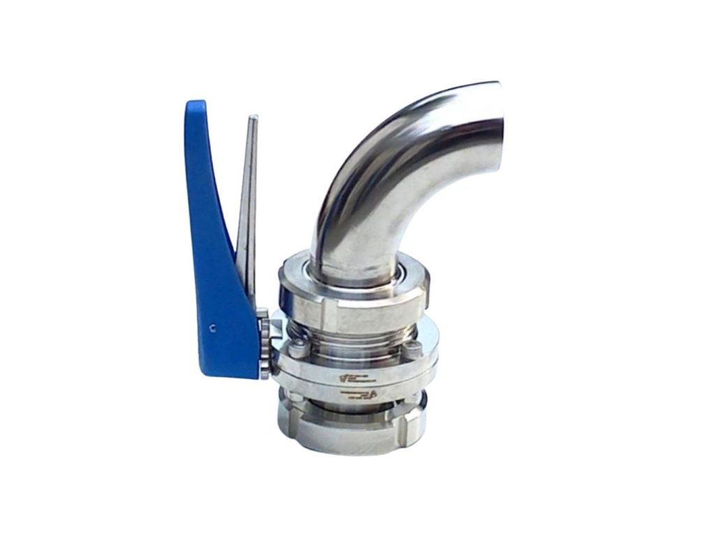 Motýlkový ventil DN50 s kolenem a ovládací pákou