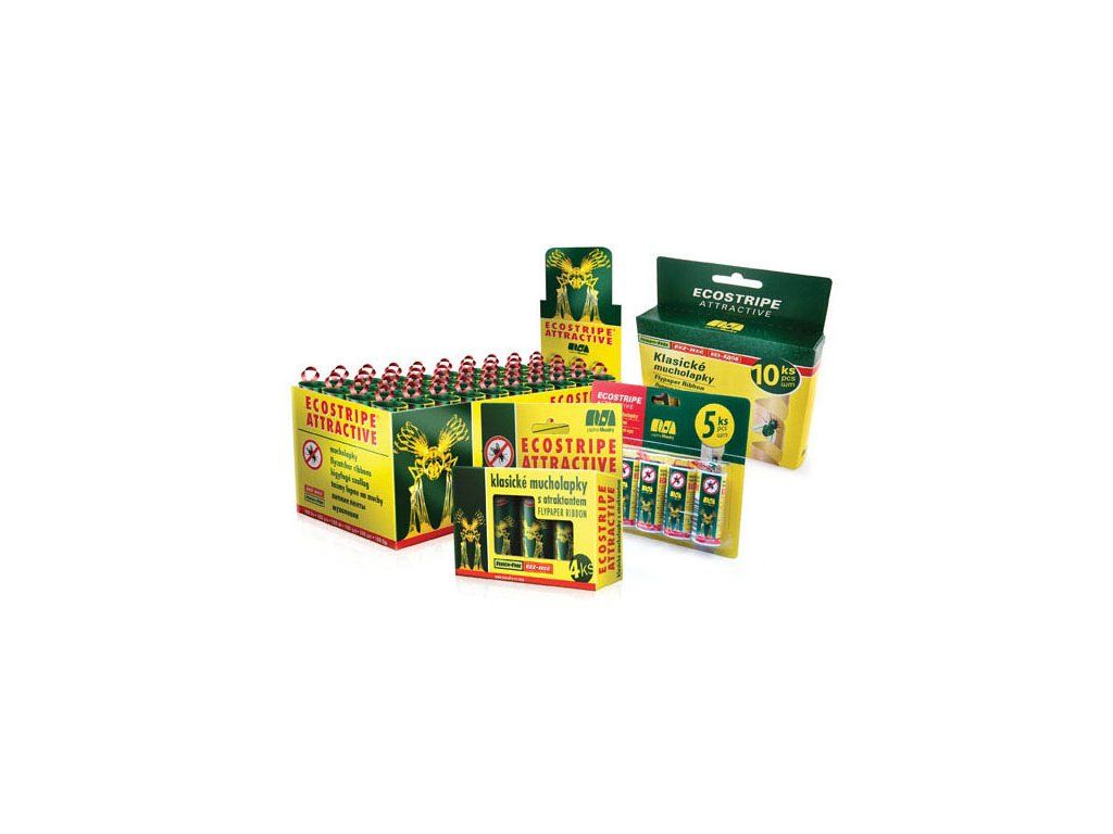 - Oboustranně lepicí pás papíru opatřený lákadly, který zaručuje účinný odchyt mouchy domácí (Musca domestica).