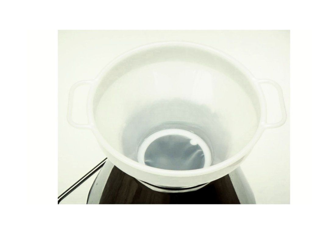 - Nalévací trychtýř do konve se sítkem a držadly po stranách.