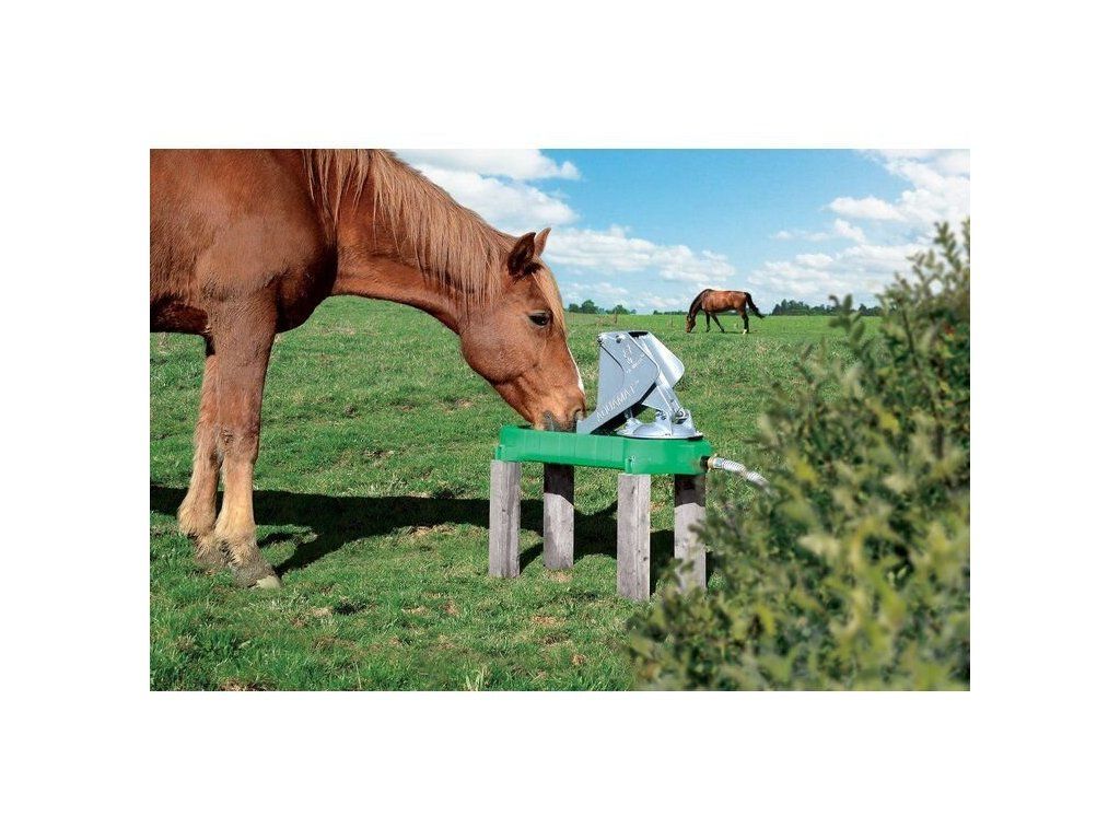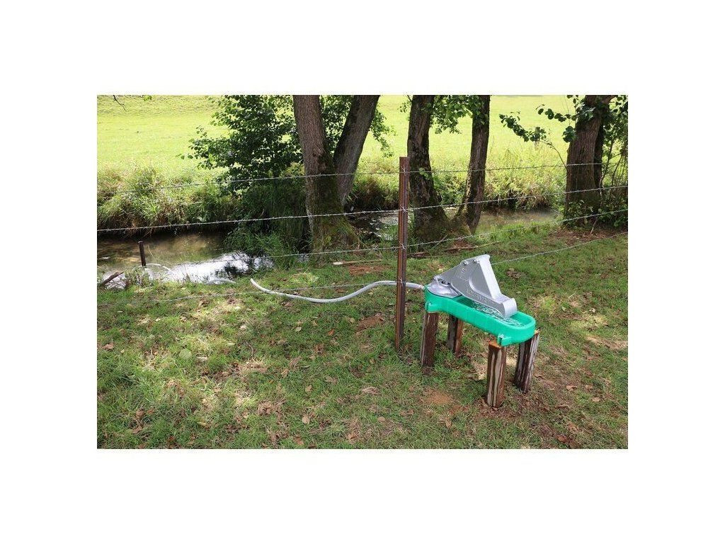 S pastevní pumpou AQUAMAT si zvířata sama dokáží načerpat vodu z hloubky až 7m nebo až 70 horizontálně. Model standardní napáječky je doplněn o napájecí misku pro mláďata, která nedokáží vlastními silami pumpovat vodu. V momentě, kdy si matka vodu pumpuje, je automaticky naplněna i miska pro mládě. Díky jednoduchému a odolnému mechanizmu membránové pumpy s hladkým chodem se zvířata okamžitě naučí napáječku používat. Kapacita postačuje pro stádo až 15 ks skotu nebo koní na pastvině. Plastový sací koš se zpětnou klapkou potřebný pro správnou funkci pastevní pumpy Aquamat není součástí dodávky, je nutné jej objednat zvlášť pod kat. č. 40403.