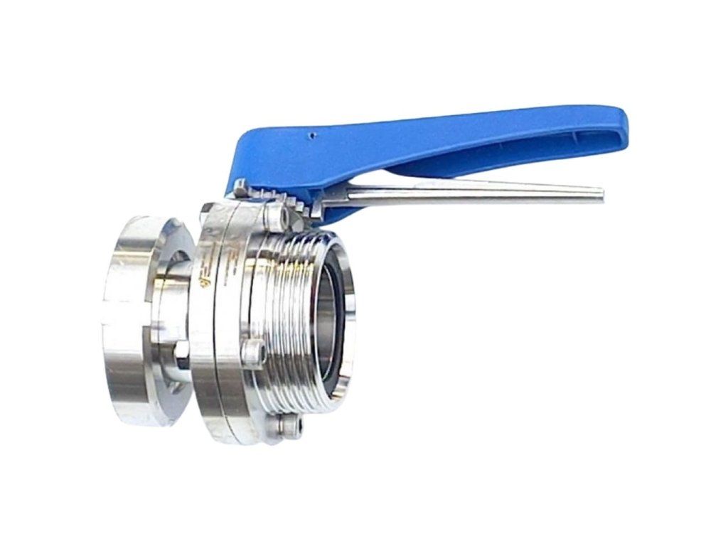 - Nerezový ventil s klapkou a šroubením pro napojení např. kolena, dávkovacího ventilu ...