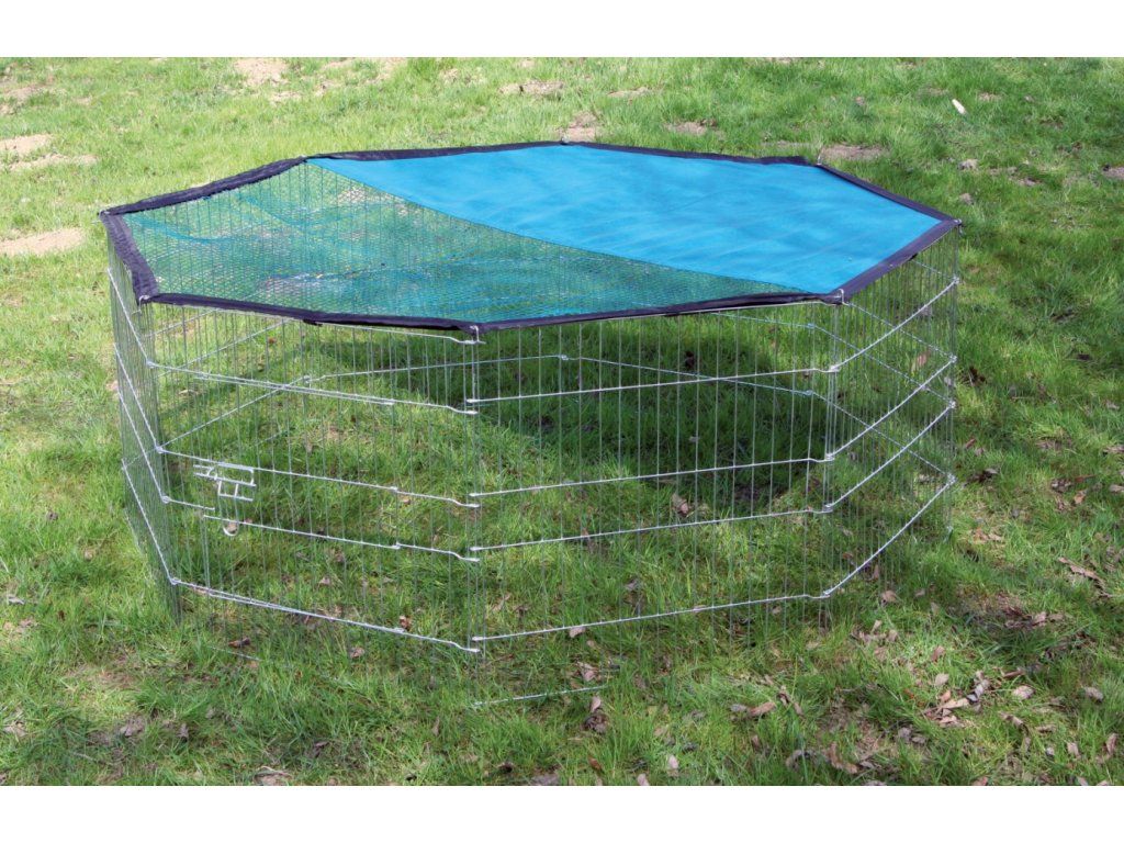 - Ohrádka má dveře a ochranu na horní část ohrádky - plachta.