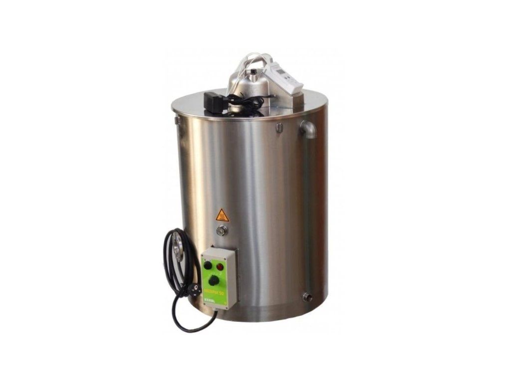 - Vzhledem k výkonu a teplotnímu gradientu cca 25°C/hod je vhodný pouze pro šetrnou pasteraci při 65°C s výdrží min. 30 minut. Po uplynutí této doby je nutné manuálně vypnout ohřev a otevřít ventil se studenou vodou. Čistá teplá voda odtéká při chlazení horním přepadem silikonovou hadicí buďto do připravené nádoby pro další využití, nebo později, již chladnější, do odpadu.