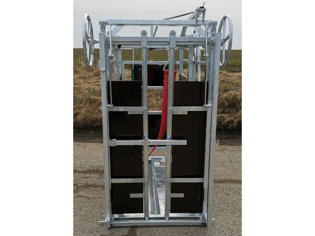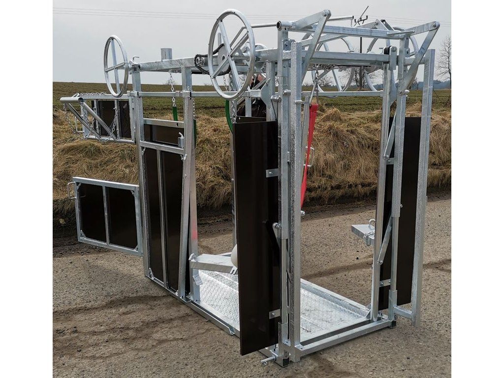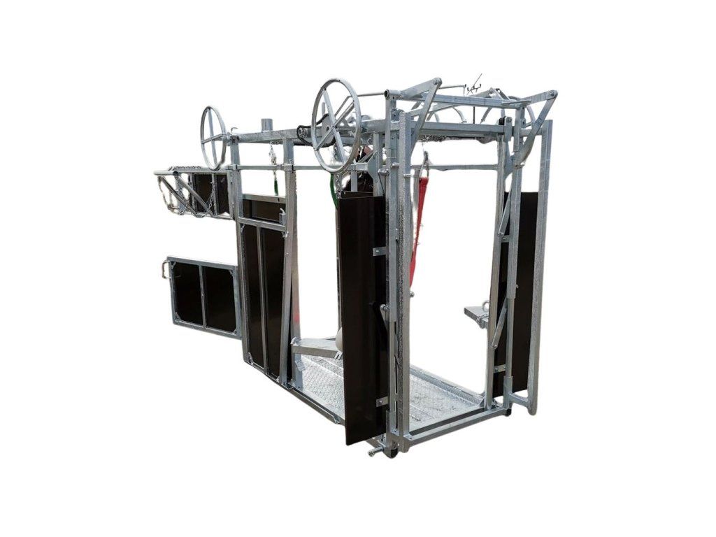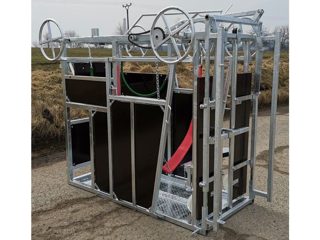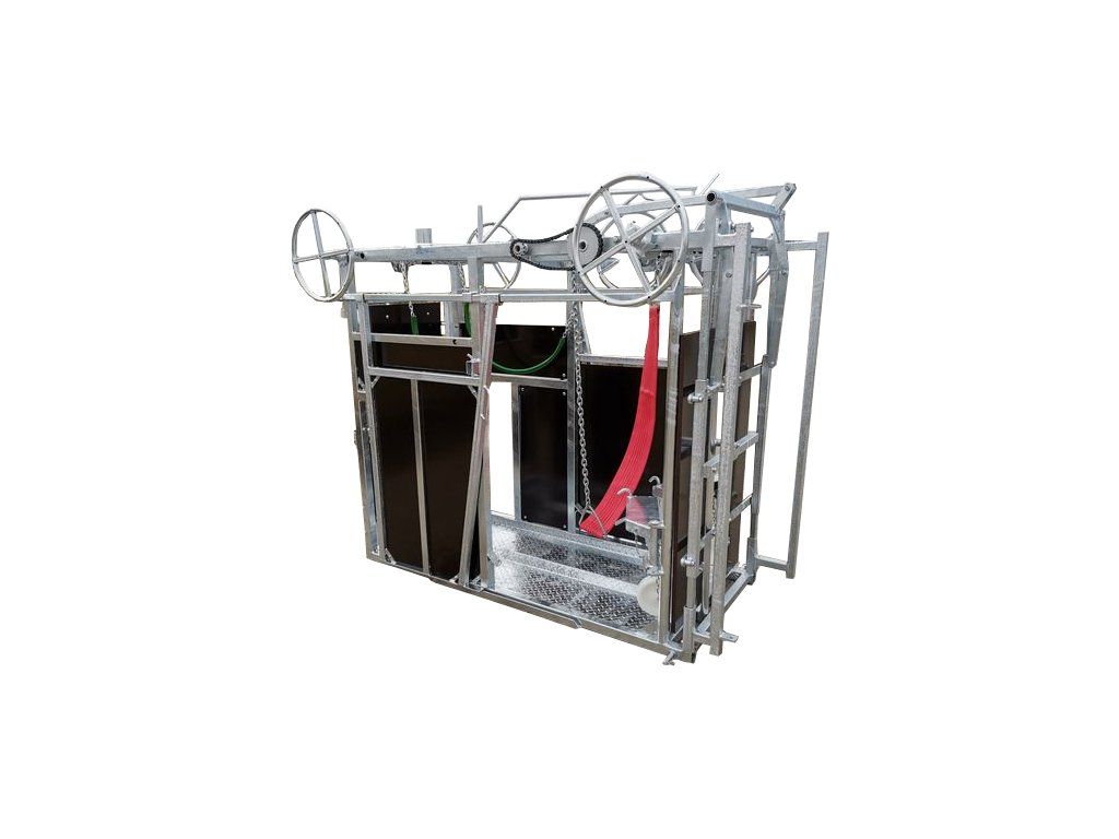 Stejné provedení klece jako typ pro dojný skot jen s úpravami (výška... ) Ke kleci lze dokoupit i jednotlivá příslušenství jako například fixační koš, podvozek a zadní dvířka. Ovládání je zabezpečeno pomocí řetězového převodu.