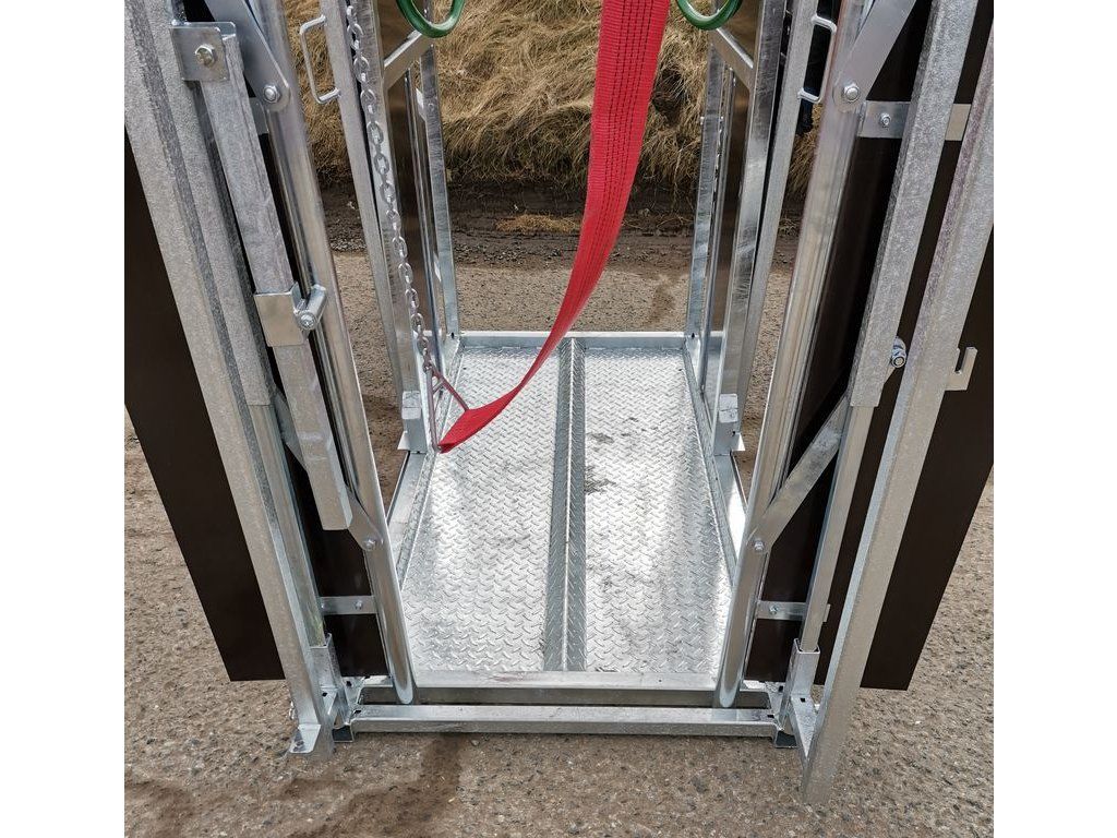 Všechna výše jmenovaná příslušenství sloužící k přímé fixaci zvířat jsou součástí dodávky. Podlaha je vybavena slzičkovým plechem. Klec je pozinkována, stěny plastové. Velikost je vhodná pro chovná masná plemena s plemenným býkem ve stádě.