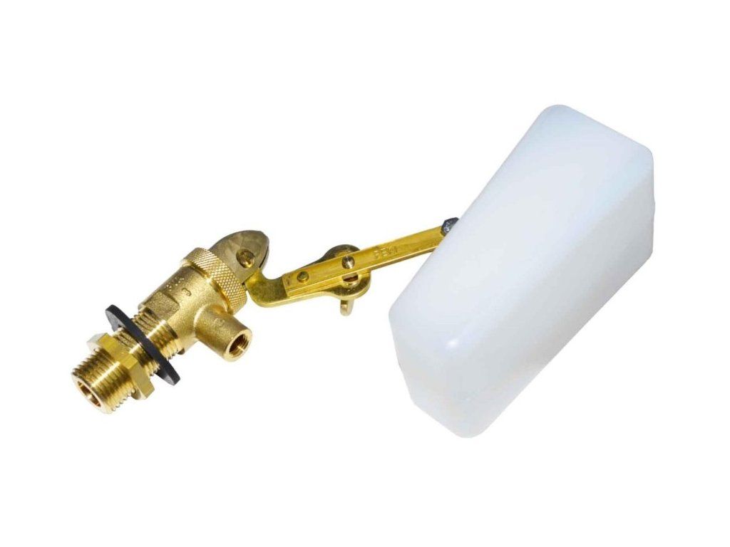 - mosazný ventil, plastový plovák na výškově stavitelném ramínku
