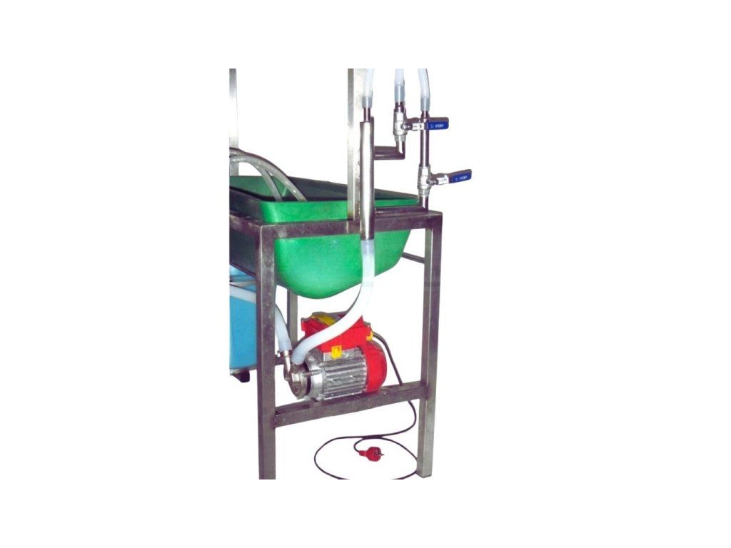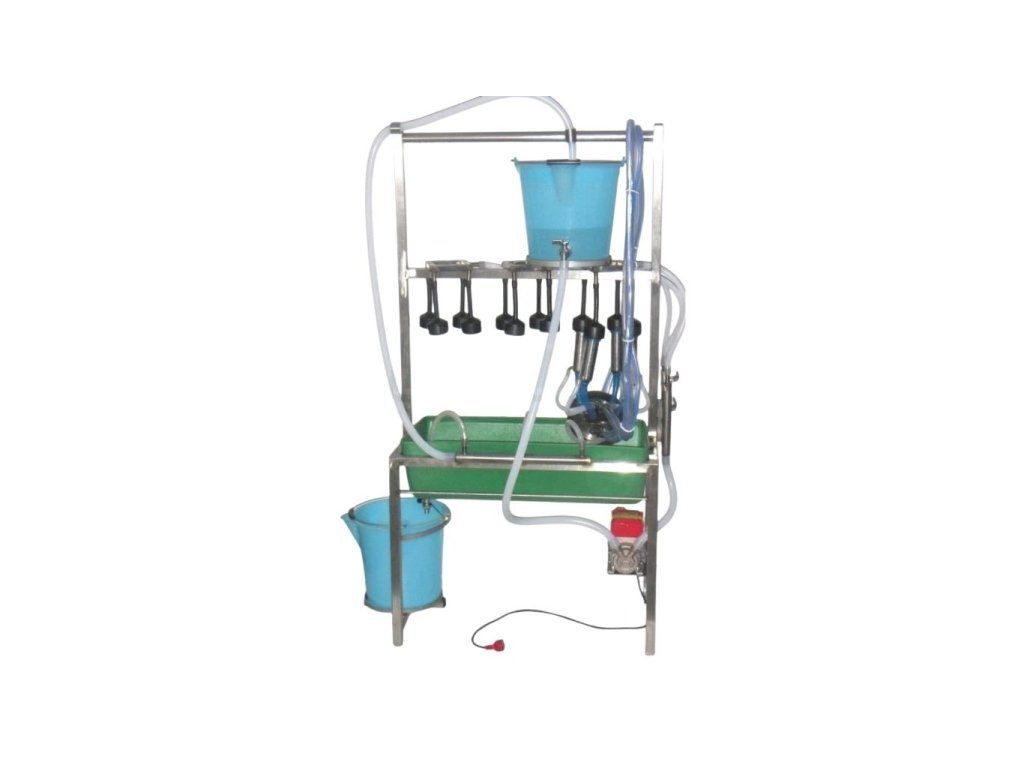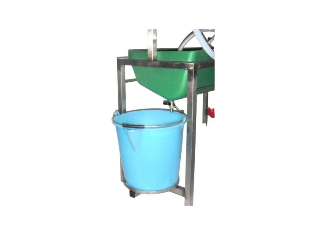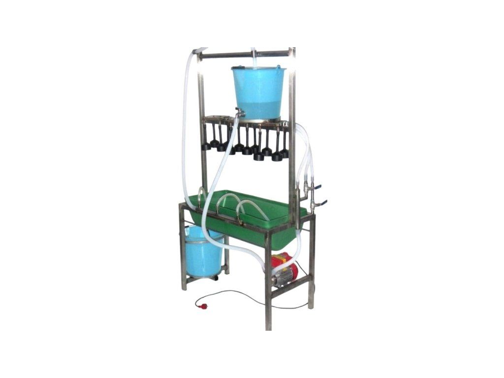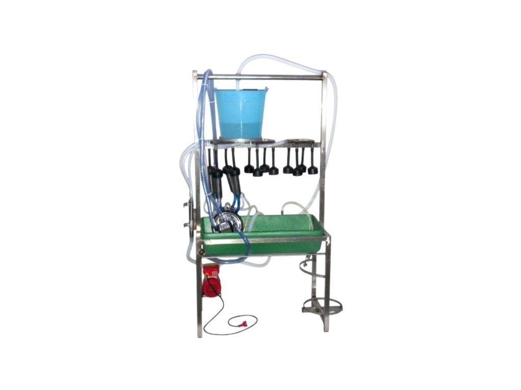 - Stabilní nerezová stolice pro proplach mléčných cest dojení obsahuje:
