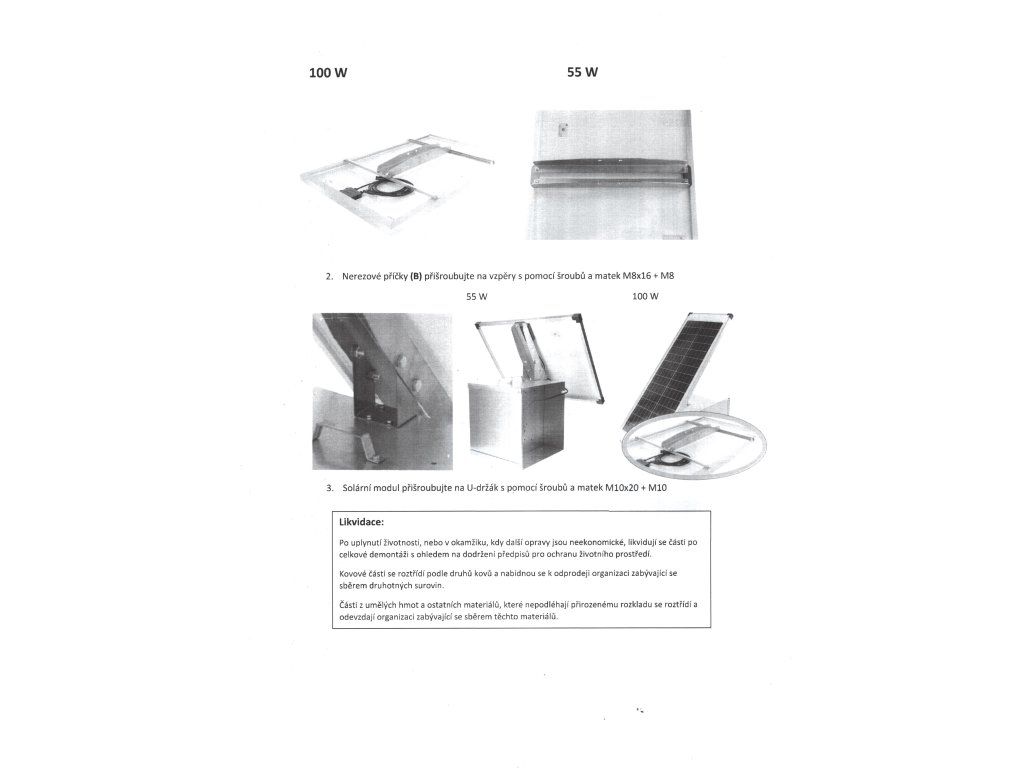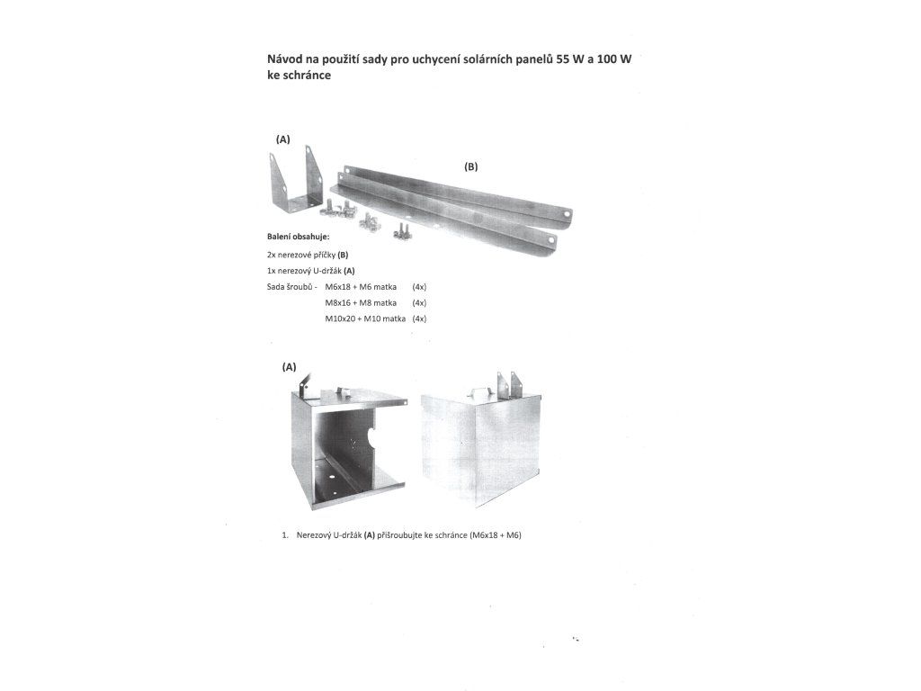 - Sada pro uchycení solárních panelů 45, 55 a 100 W ke schránce.