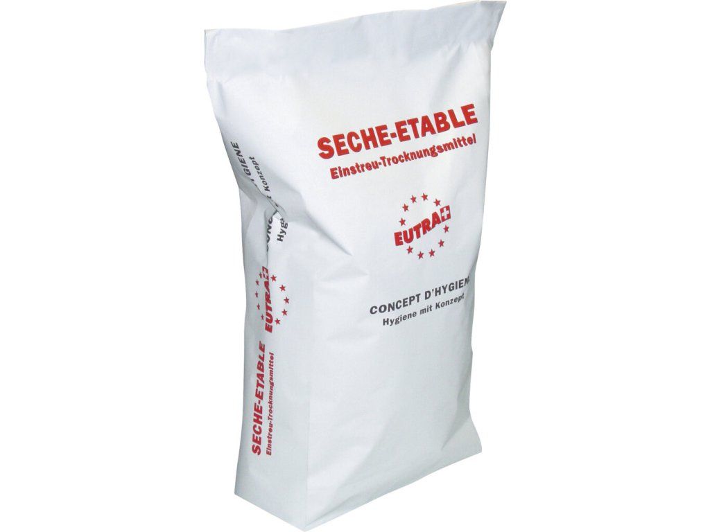 - Seche-etable 25 kg zachycuje pachy, váže amoniak, snižuje tlak infekcí, omezuje průjmy, v zažívacím traktu acidifikátor.