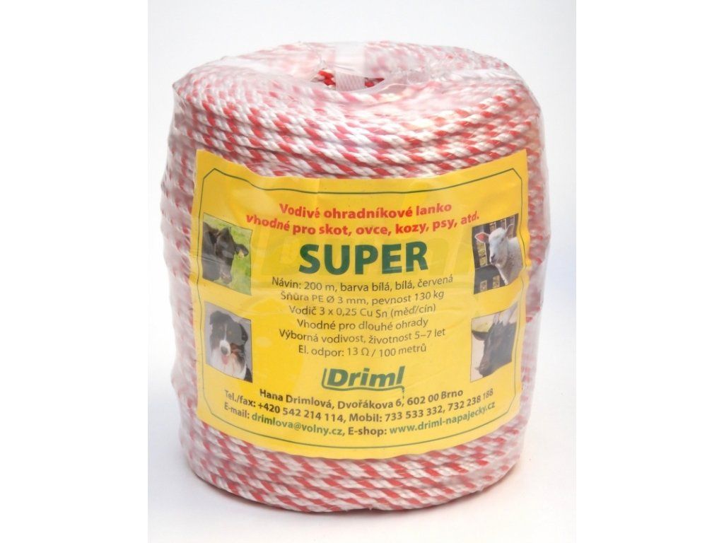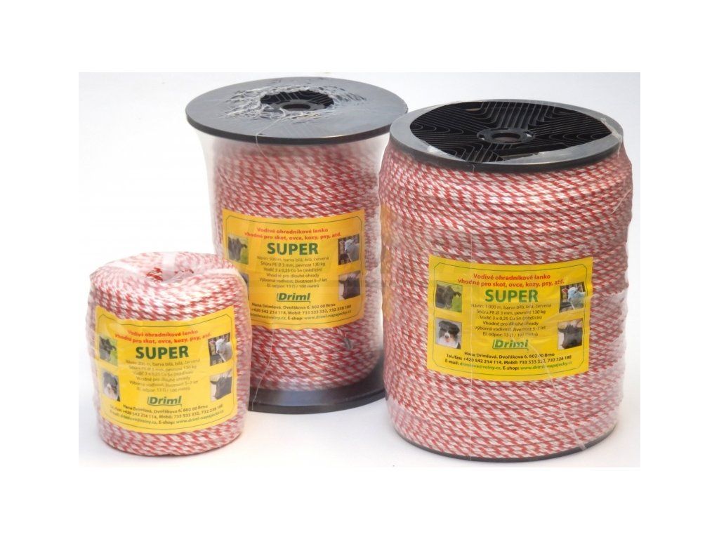 SUPER lanko PP, návin 200m, Ø 3mm, červeno-bílé