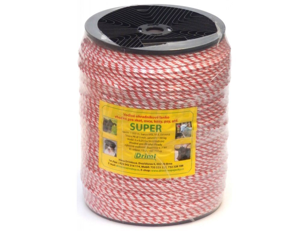 SUPER lanko PP, návin 1000m, Ø 3mm, červeno-bílé