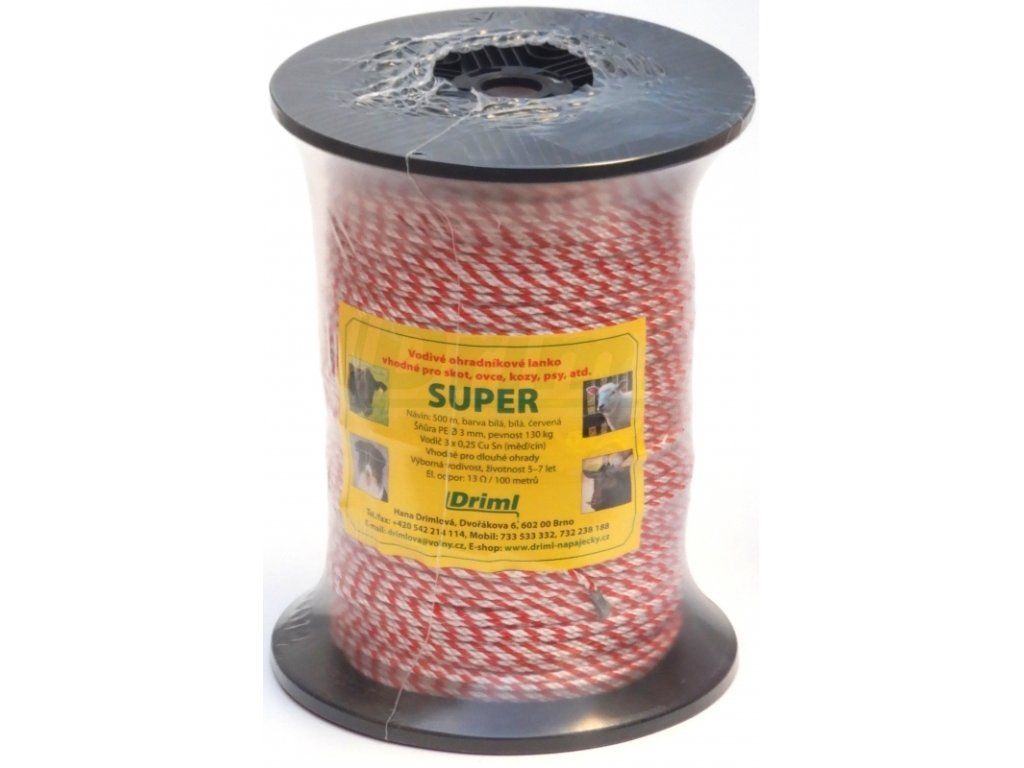 SUPER lanko PP, návin 500m, Ø 3mm, červeno-bílé