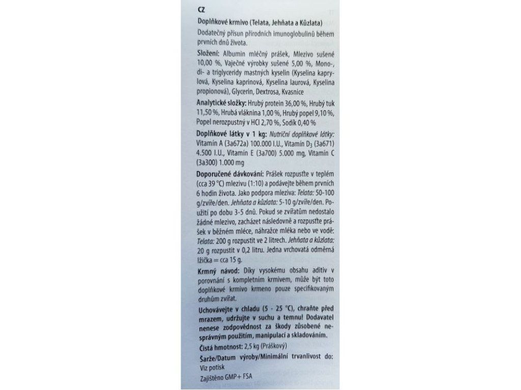 - obsahuje koncentrát (z mleziva) a speciální směs dalších účinných látek, přesně dle potřeb mláďat