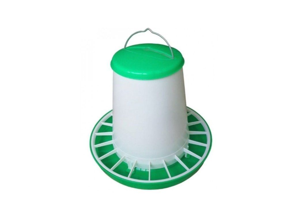 - Plastové závěsné krmítko s přepážkami pro 10 kg krmiva.