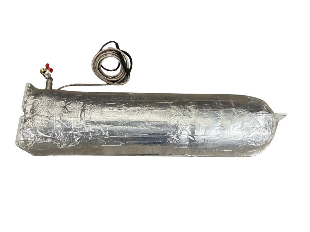 Mezi plášti hliníkové napáječky je instalováno 3,6 m kabelu o výkonu cca 70 W. Od venkovního krytu je oddělen sendvičovou tepelnou izolací - Mirelon / hliníková folie. Výkon kabelu zaručuje odolnost až do -30°C. Teplota vody při venkovní teplotě -5°C až -10°C je cca 10°C.