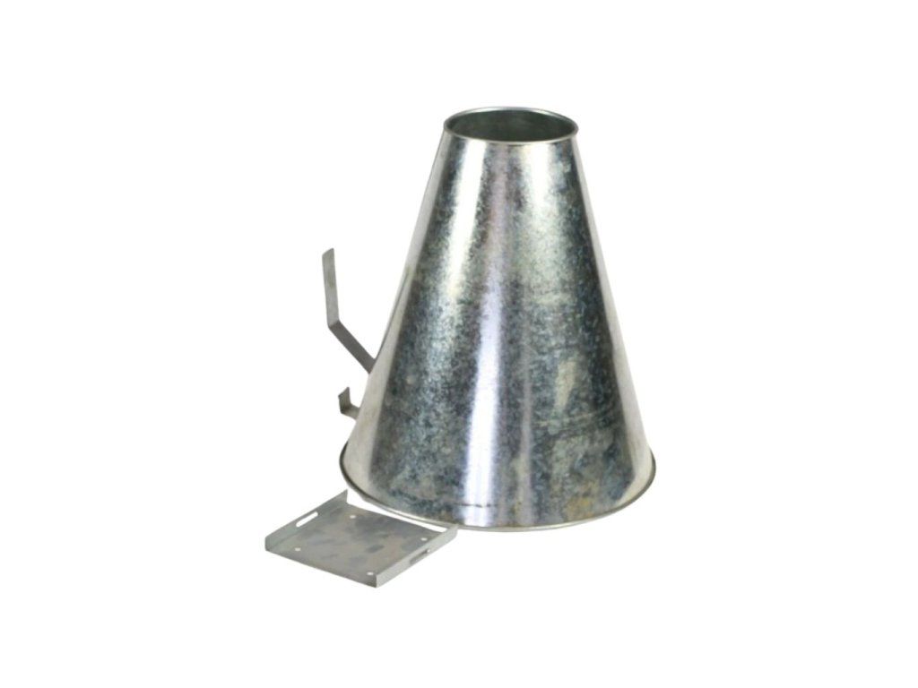 Vykrvovací trychtýř pro drůbež z pozinkovaného plechu, se suportem na stěnu.