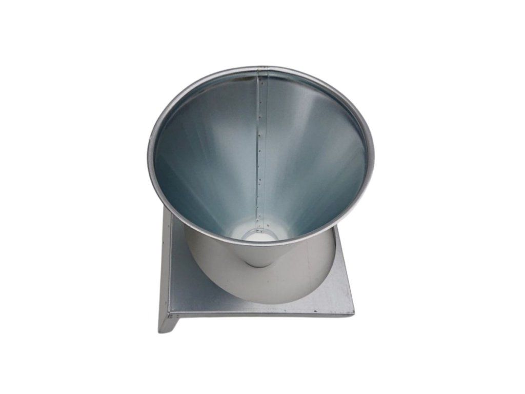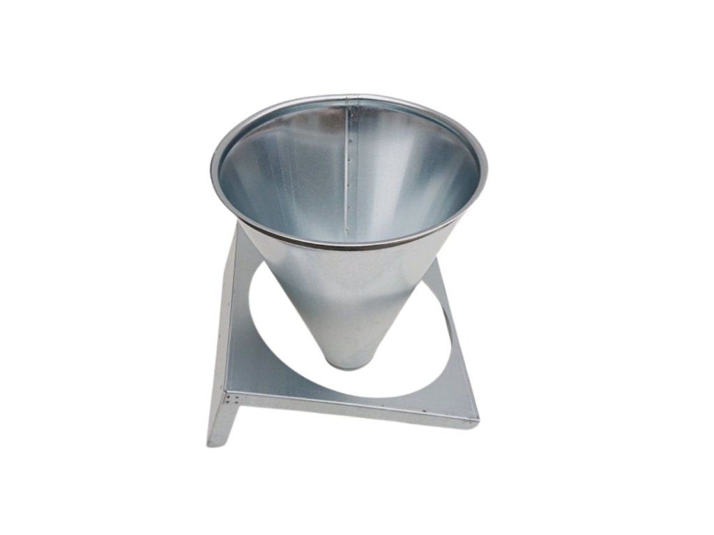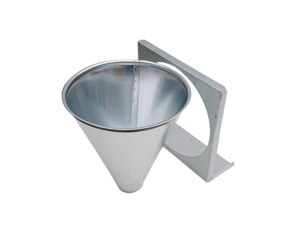 Vykrvovací trychtýř pro drůbež z pozinkovaného plechu, se suportem na stěnu.