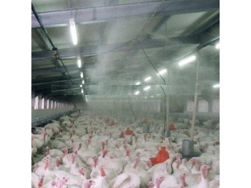 - Vysokotlaký mlžič s průtokem 1 - 1,5 l vody za minutu.